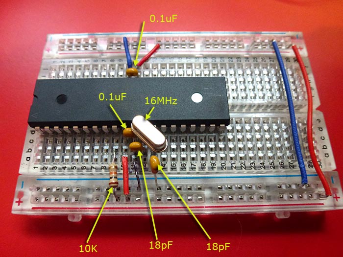 Job done! You now have a "bare bones" Arduino-compatible processor on a breadboard! Enjoy!
