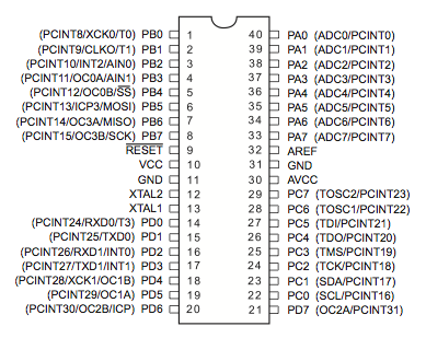 There is also a 10 k pull-up resistor for the reset pin. Although the chip has a built-in pull-up, this appears to make it reset more reliably when downloading new programs.