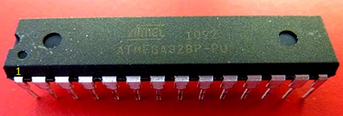 We will start off with a "raw" Atmega328P-PU chip, the sort of thing you might buy off the shelf from Digi-Key, Element14, or other suppliers: