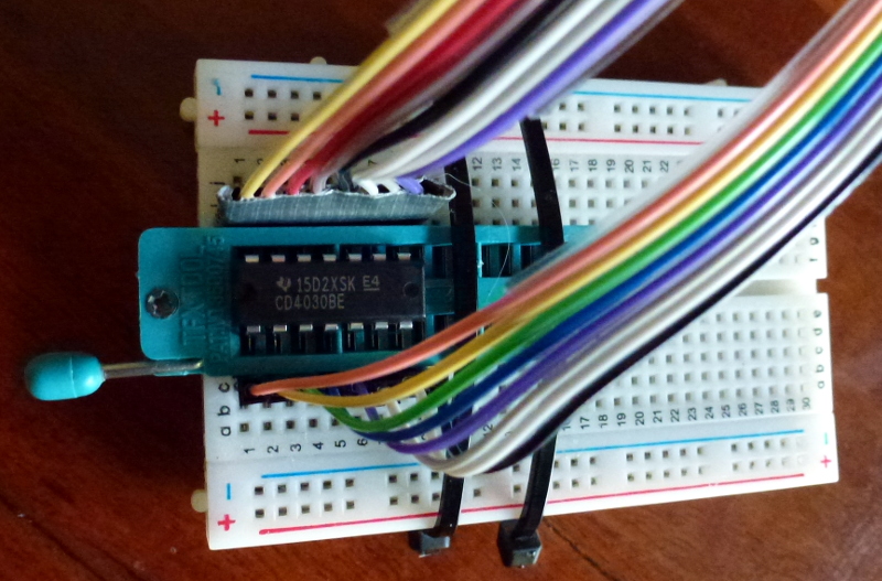 I also found that having the Ground pin go through the 330Ω resistor made the test results unreliable in some cases. Hence the extra two wires in the schematic going to pin 7 (for a 14-pin IC) and pin 8 (for a 16-pin IC) since most of those "old school" ICs have the Vcc and Ground pins in the same place.