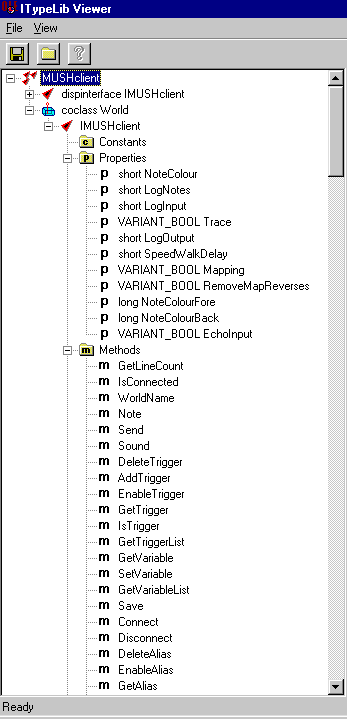 I'm not sure, but looking at the typelib viewer (below) it is one of 'MUSHclient', 'IMUSHclient' or 'World'.