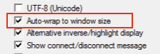 Show line Info, Auto Pause, New Activity flashes taskbar, Auto-wrap to window size, Alt. Inv/highlight disp., show conn/disconn.